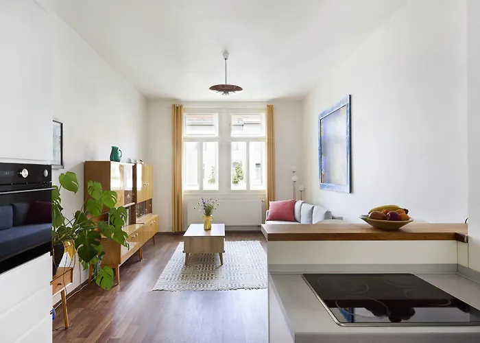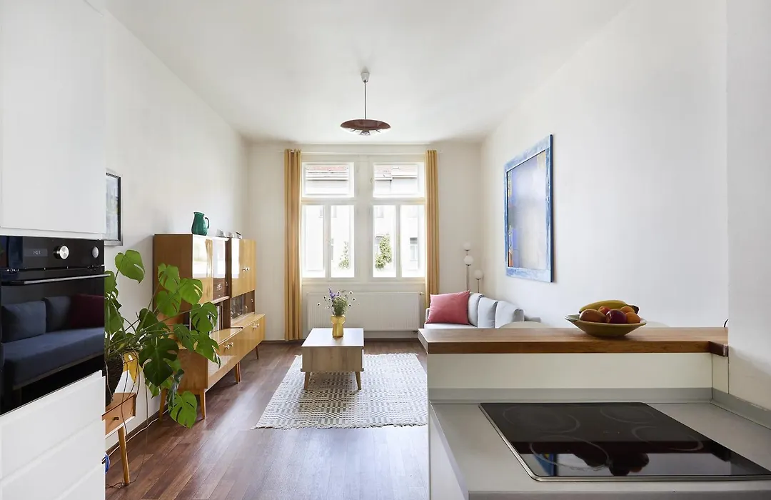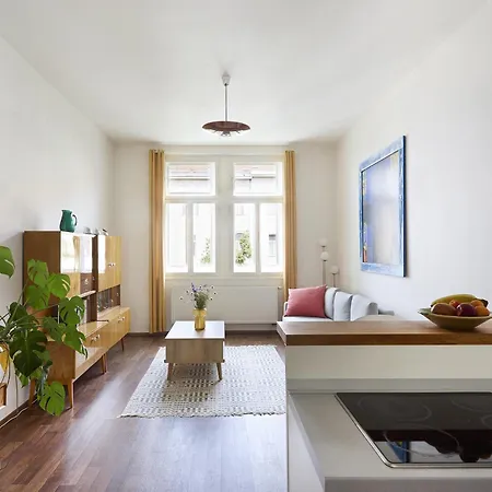 يتوفر منطقة المطبخ الصغير المجهز مع ثلاجة والفرن في الشقة، فضلاً عن أدوات تحضير القهوة والشاي. تقع الشقة بمساحة 57 مترًا مربعًا مجرد سيرا على الأقدام إلى أقرب محطة حافلات Korunovacni.